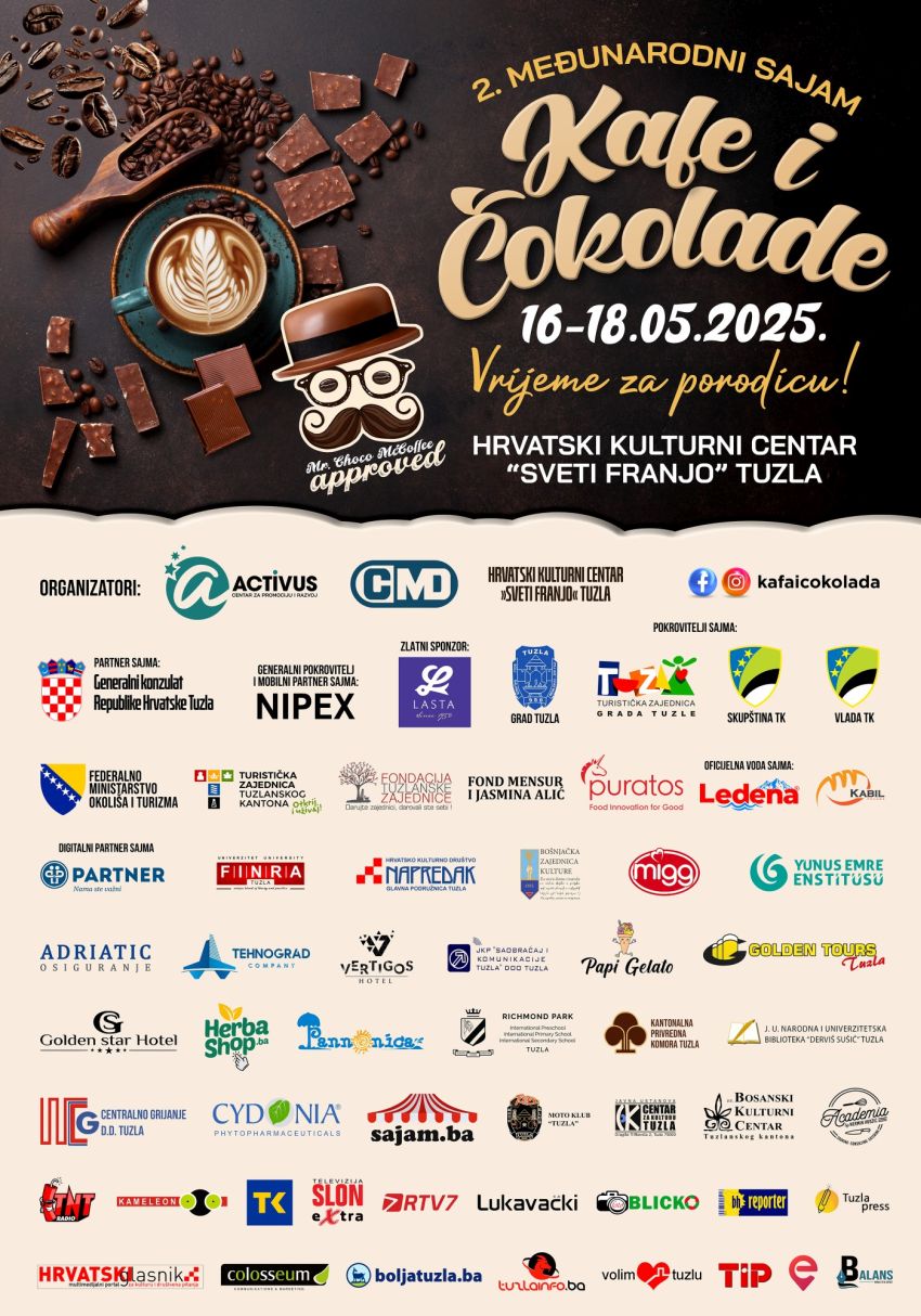 U Tuzli se vrše posljednje pripreme pred 2.Međunarodni sajam kafe i čokolade,najmirisnije i najslađe sajamske manifestacije ove godine u gradu soli, koja će se održati od 16.do 18.maja u Hrvatskom kulturnom centru „Sveti Franjo“.