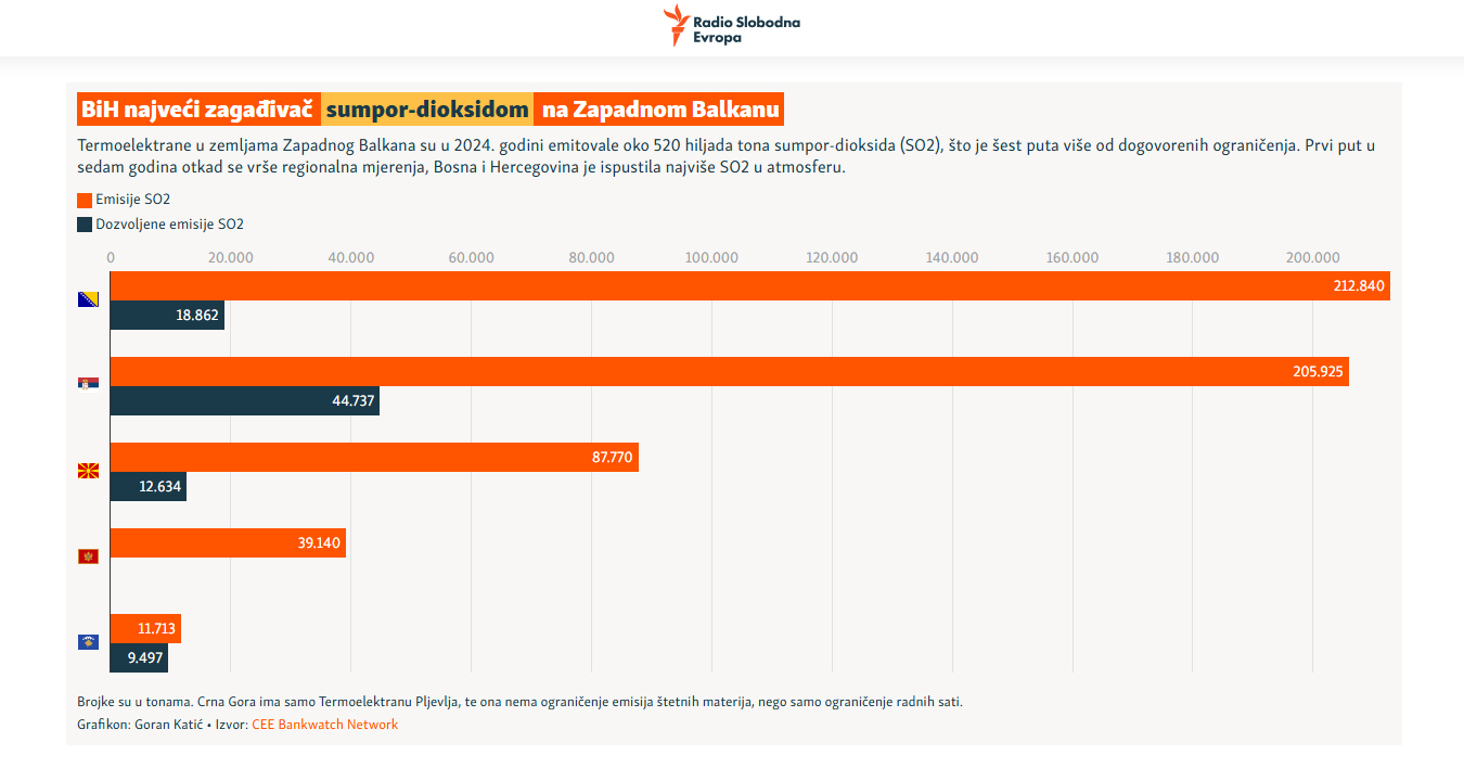 Prvi put u sedam godina otkad se vrše regionalna mjerenja, Bosna i Hercegovina je ispustila najviše SO2 u atmosferu.