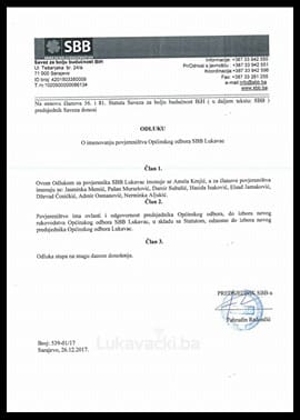 Ovom Odlukom su nedavni i nezavršeni unutarstranački izbori vraćeni na početak, a uvedenom Povjereništvu je dat mandat da otkloni određene nedostatke i privede unutarstranačke izbore kraju. Na ovaj način je iz Centrale SBB u Sarajevu tako poslana poruka ko su kadrovi koji će u narednom periodu uređivati ovaj politički subjekat na Općini Lukavac. Tako će do izbora novog rukovodstva SBB u Lukavcu, Povjereništvo odlučivati o svim bitnim stvarima kada je SBB u pitanju na Općini Lukavac, uljučujući kadrovsku politiku, ali i djelovanje na lokalnom nivou.