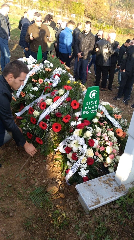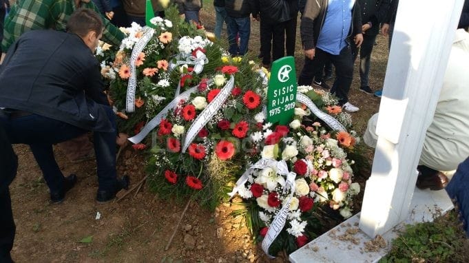 Ispred Šarene džamije u Gračanici nekoliko stotina ljudi iz Lukavca i Gračanice oprostilo se od profesora Rijada Šišića Rikija koji je sahranjen na groblju Šabuša.